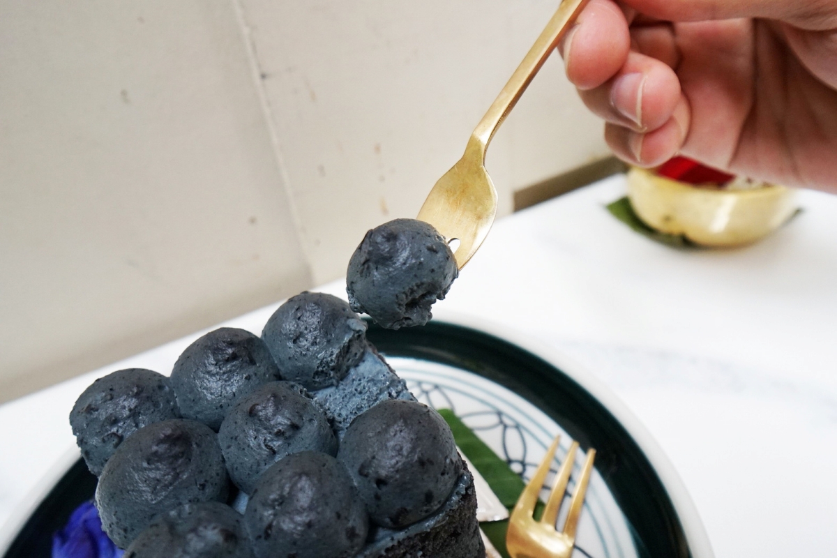 很推薦大家試試這裡用椰子和黑糯米為原料做成的蛋糕(英文叫「Nilla」),它的顏色很吸睛,口感也是其他甜點店、咖啡廳吃不到的,甜度不會說很高,奶油裡帶著一點類似砂糖的顆粒感,算獨家的口味吧~