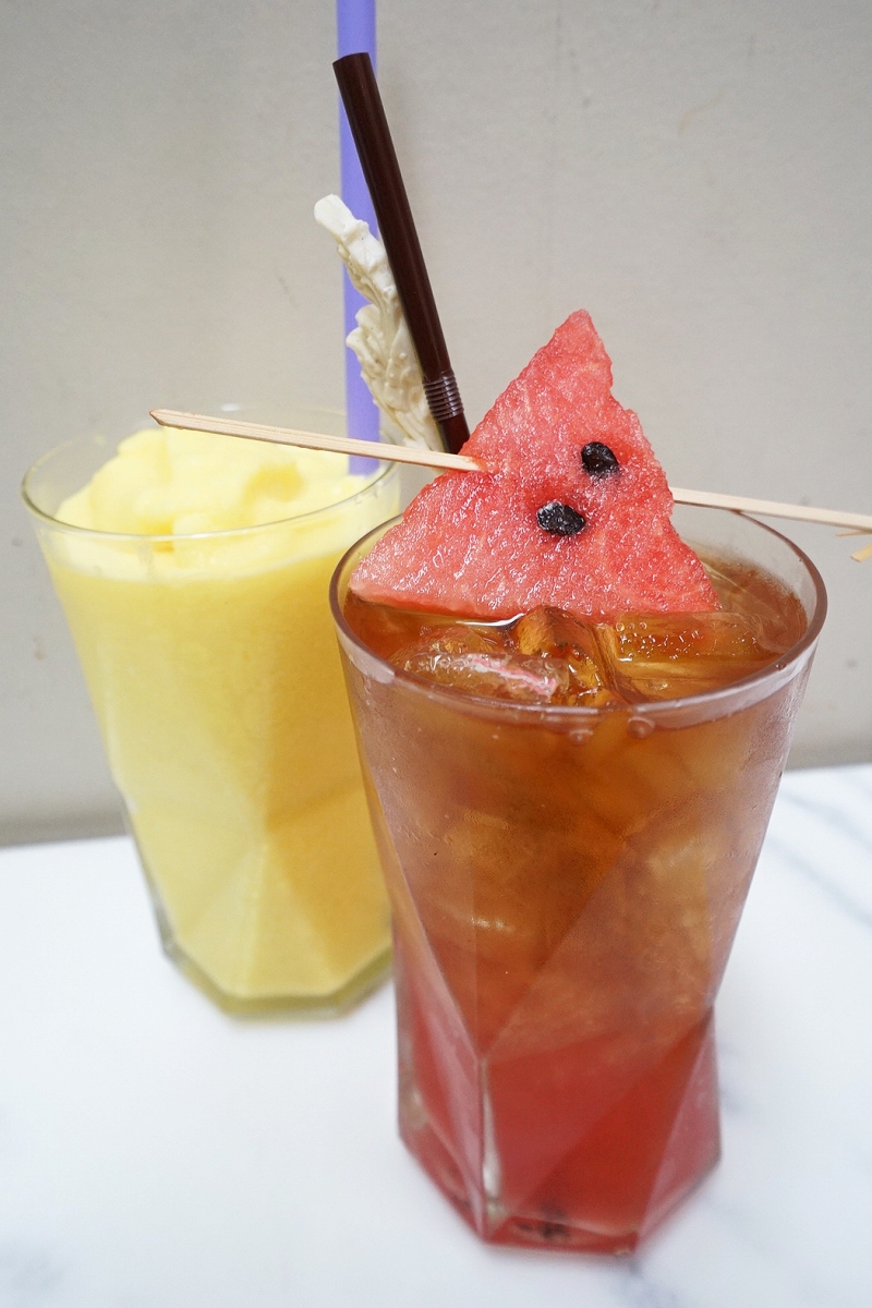 飲料的話我點的這杯是伯爵茶混搭手搾西瓜汁,如果你覺得老是喝泰奶、拉茶太甜了,這種清甜的飲料你應該會比較喜歡。