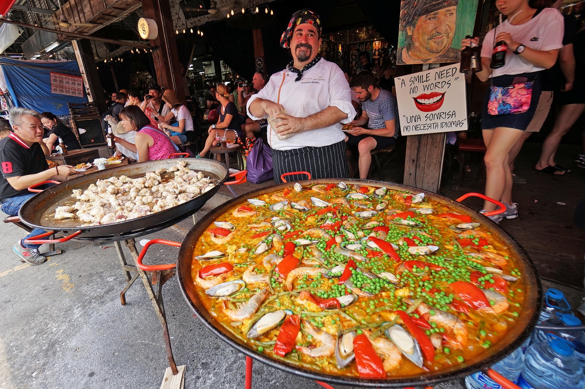 另外一家午餐的好選擇是名氣響叮噹的「Viva 8」,之前這裡的老闆兼主廚就是照片中這位總是臉上掛著笑容的Fernando,他賣的是「Paella(西班牙海鮮飯/西班牙大鍋飯)」(也有販售披薩之類的),不過現在好像老闆換人了。