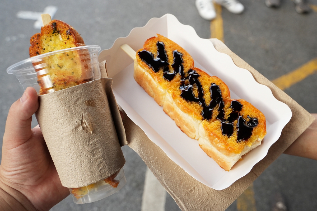 選好你要蒜味還是奶油口味的麵包以後還可以免費再加糖粉、煉乳、巧克力醬、草莓醬、蕃茄醬等額外的調味,但都不要加也可以啦~