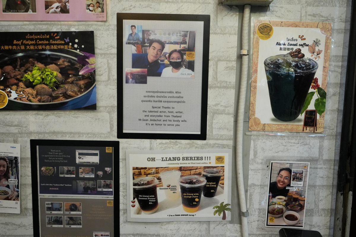 牆上有貼很多泰國名人、藝人的照片,感覺也是一間蠻受歡迎的麵店。(戴眼鏡那位小姐就是會說中文的店員,我猜她可能也是老闆的女兒之類的)