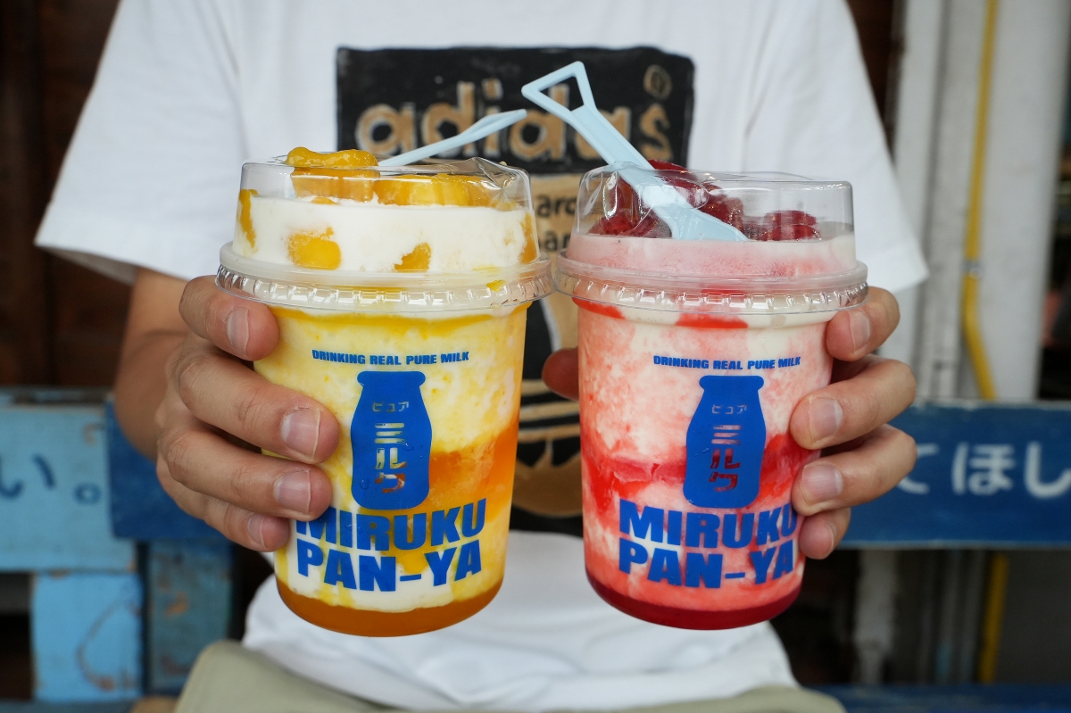下一家是走日式冰品和甜品風格的「Miruku」,我覺得店家在整個形象設計上很用心,門口那些看板上的商品照片跟平面設計的風格都很引人入勝。
