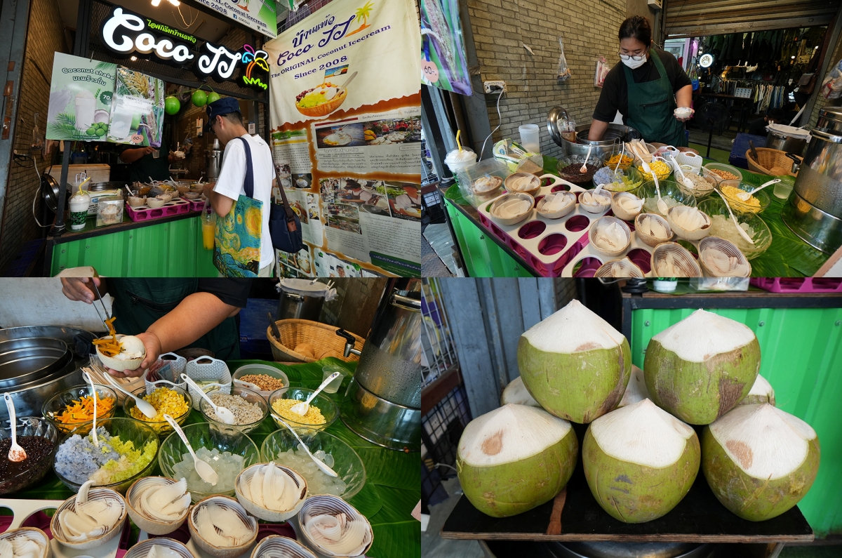 主食、鹹食類大家吃到一個地步以後一定會想換換口味吃點甜食或者飲料,所以接下來跟你們分享的是2008年就創立至今的「Coco JJ Coconut Icecream」!(它實際位置比Google標點的要再更往南一點,然後整個市集也不只一間分店)