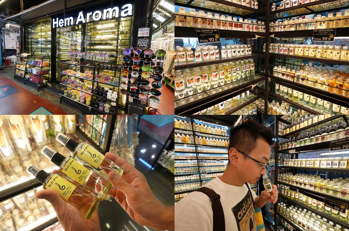如果你們也想買點泰國的香氛產品但預算沒有那麼高的話,恰圖恰週末市集這邊有很多間「Hem Aroma」(隨便走都可以看到分店),擴香瓶、精油、水氧機等產品都有販售,想找花香、果香、草本香、木質香的香氛產品應有盡有(現場都可以試聞),如果你們的預算只有幾百泰銖的話,這家的是比較經濟實惠一點。