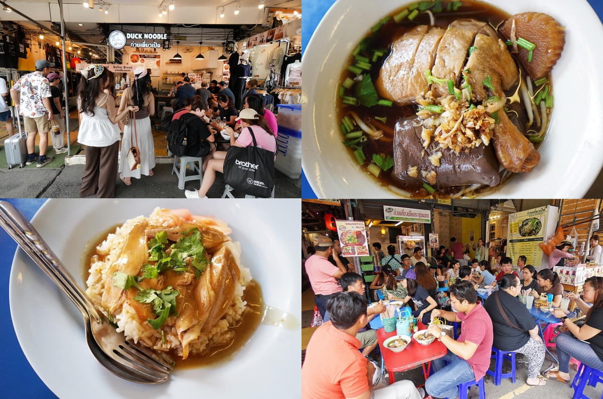 下一間也是人氣強強滾、一位難求的「ปราณี ก๋วยเตี๋ยวเป็ด Duck Noodle」,主要賣的是鴨肉飯、鴨肉麵,這裡的鴨肉不是那種鹽水鴨或煙燻鴨肉的路數,感覺是有燉煮過,肉質很軟嫩又不會太爛,我自己最推薦的是他們的「Drumstick Duck Noodle(鼓棒鴨腿麵)」 ~ 麵上面放了一支大鴨腿、嫩嫩的鴨血還有一塊很入味的白蘿蔔, 重點是湯頭甘甘甜甜的, 非常好喝, 大家有機會可以試試!