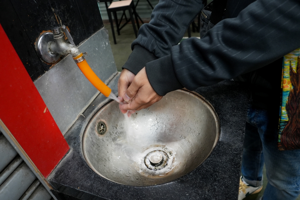 餐廳的座位旁就有附設洗手檯,但如果想上廁所的話要前往東門市場附設的公用廁所。