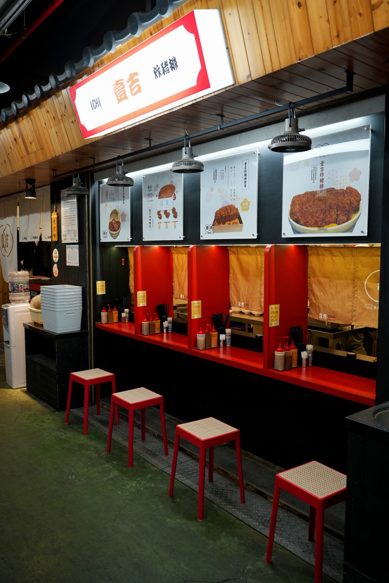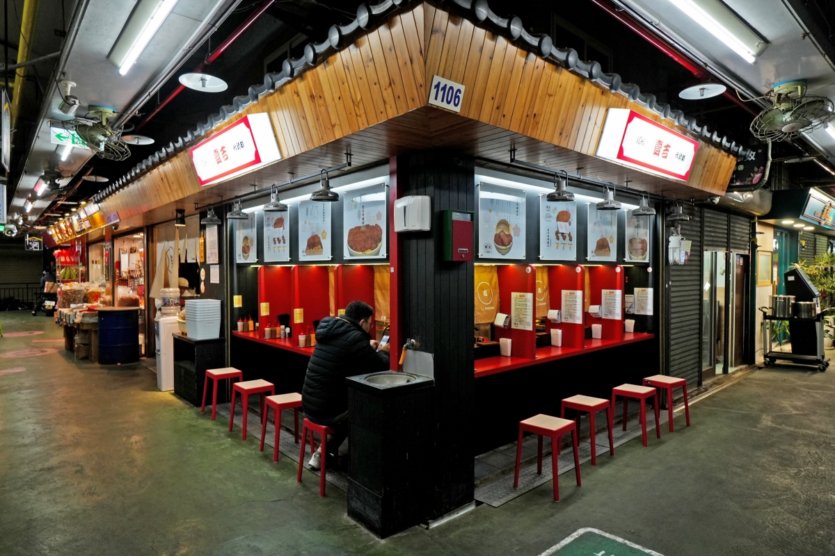 壹吉炸豬排專門店沒有室內的用餐座位,但因為位於市場裡頭,所以也不至於會被太陽直射或被雨淋。