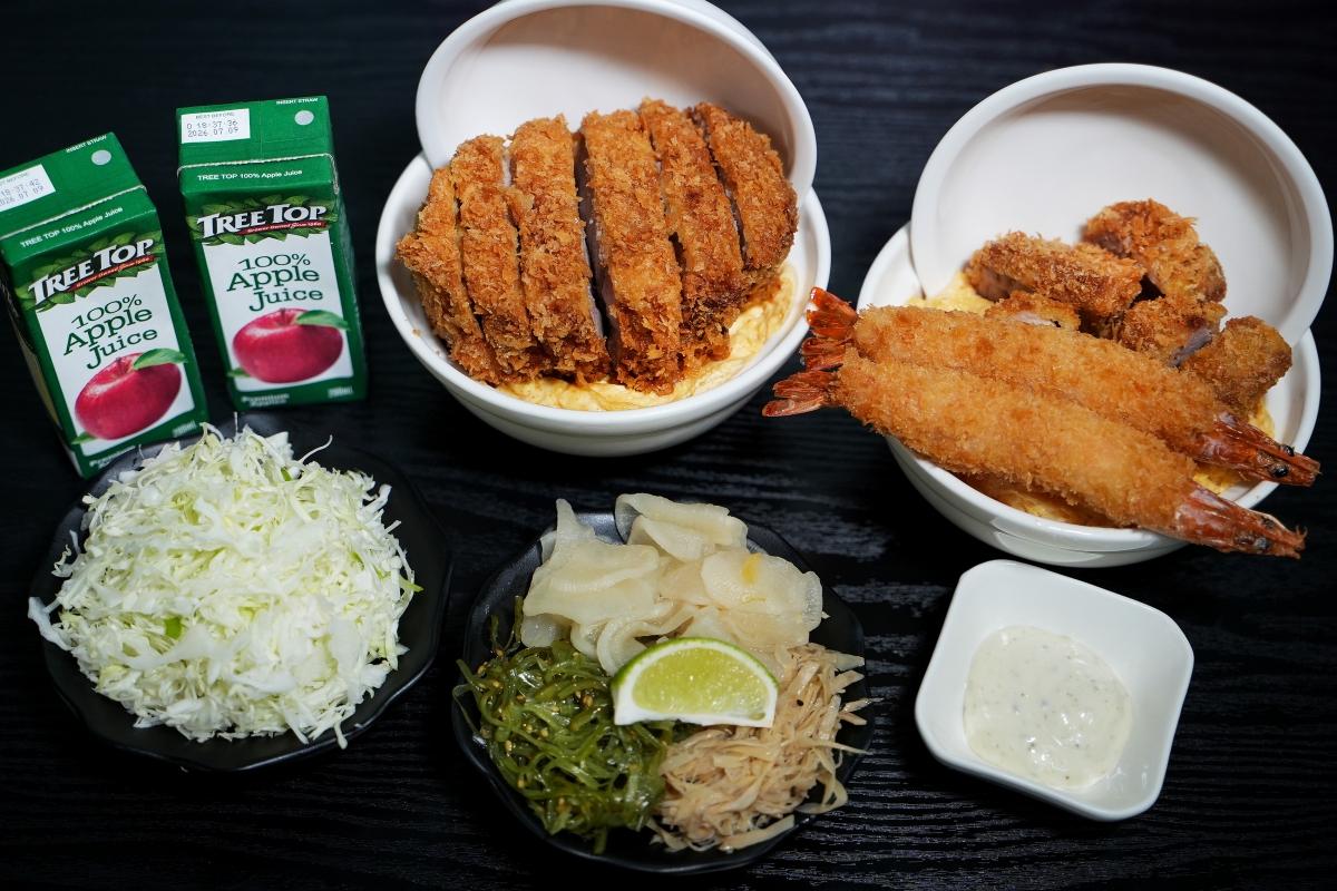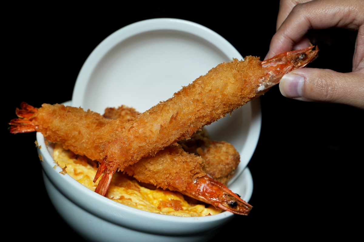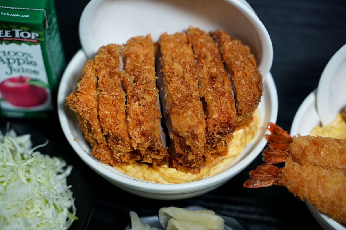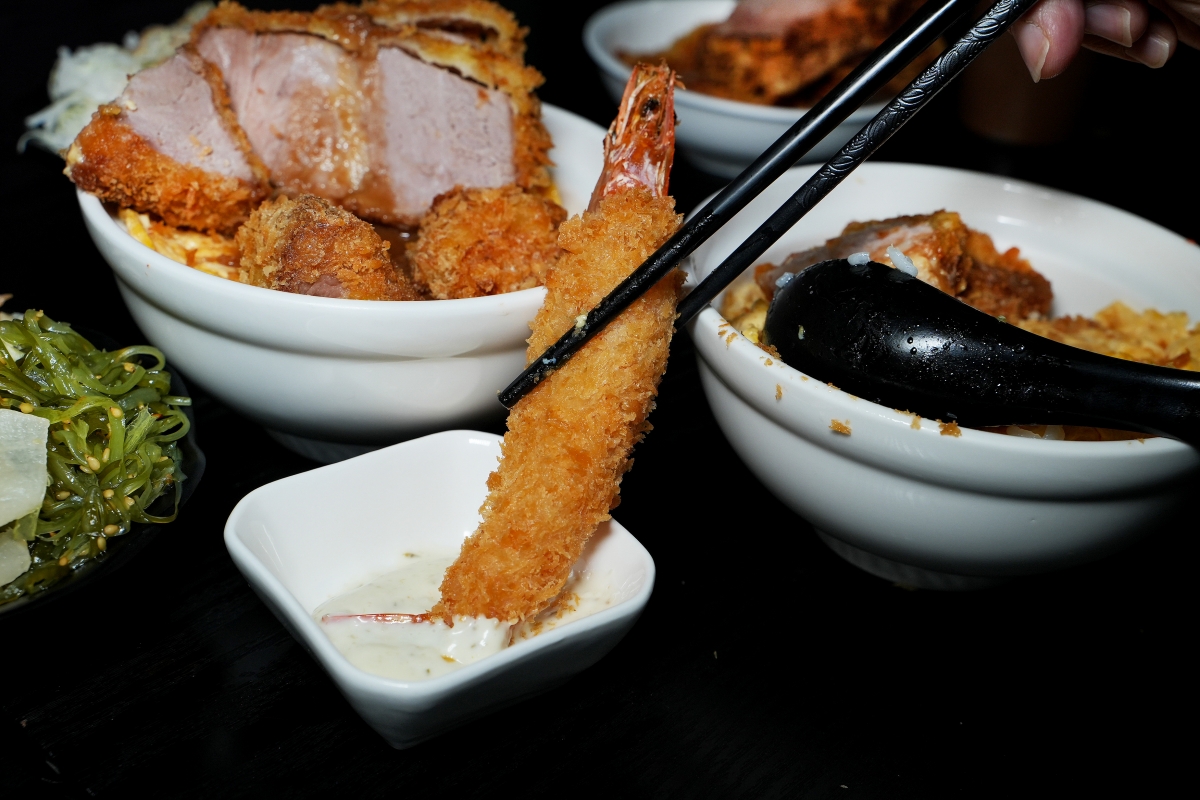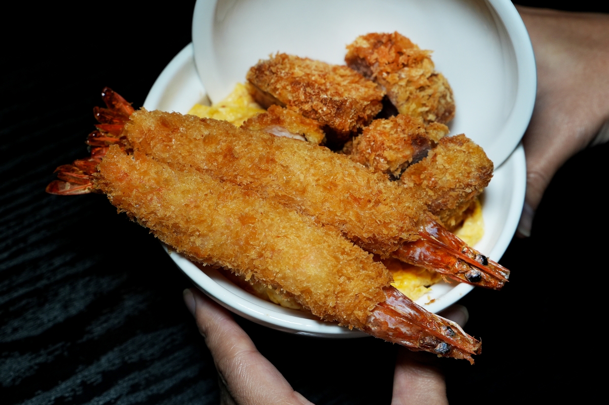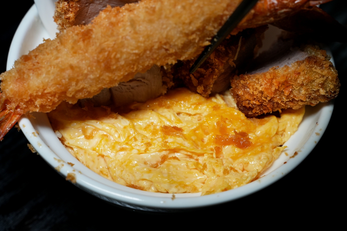 那天朋友點的是炸豬排跟炸蝦雙享的「炸蝦豬排丼」,不過其實我跟他都是主菜一人、一半這樣分著吃。