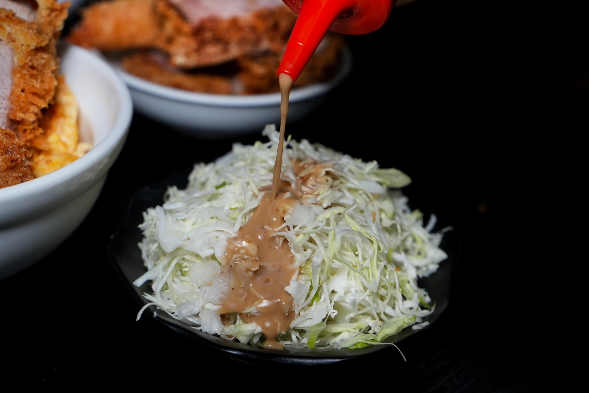 脆脆又帶有水份的高麗菜絲可以淋點桌上的和風胡麻醬,芝麻的香氣加上微酸的滋味跟高麗菜絲很搭。(記得吃不夠還可以再續~)