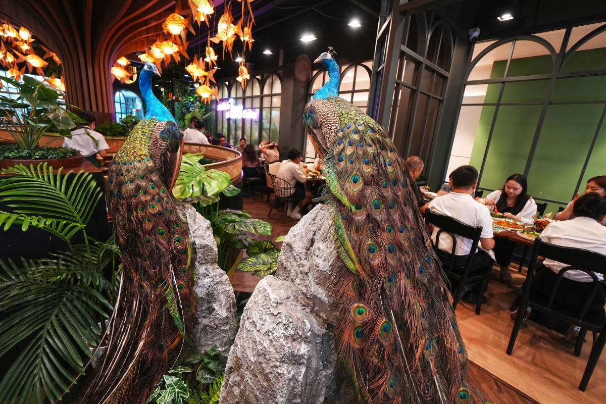 店內用餐環境我覺得美輪美奐、有低調奢華的氣息而且融入自然的元素,入口處就有孔雀(的標本?),整個氛圍類似某些時尚的餐酒館。