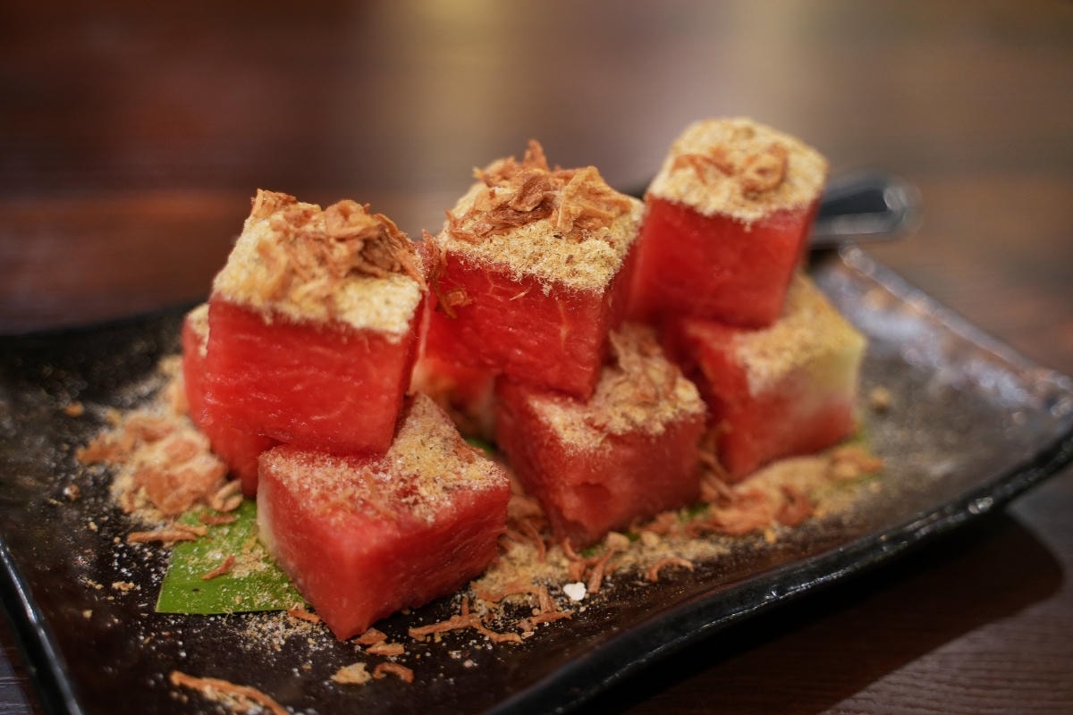 再來這一份就是特別促銷組合的「西瓜魚乾」了,其實我最近幾趟去泰國都有吃到西瓜魚乾或「甜蝦醬西瓜沙拉」這類的料理,本來這次是不想再點了(不是不好吃,是想介紹一些其他比較沒吃過的)…但因為有特價,所以還是必須點起來!