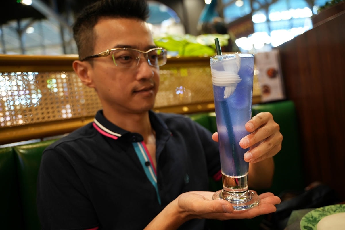 另外這一杯喝起來的滋味感覺是新鮮椰子汁加了一點點香蘭葉的清甜,還吃得到幾片椰子肉,然後藍色的部份是來自於蝶豆花,顏色很美但是並沒有特別的味道。