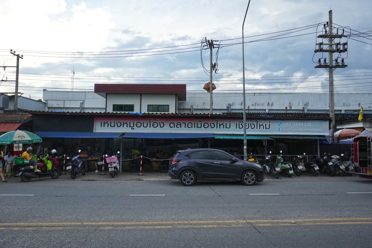 這間Neng’s Clay Oven Roasted Pork位於清邁古城區北邊約1.2公里處,不過你們只要住在古城區內或週邊不遠處的話,叫個計程車或嘟嘟車搭過去都不用太久的時間(尼曼路那一帶搭車過來也只要10分鐘左右),店門口沒有英文招牌,不過你們就認明我拍的這張照片就好。