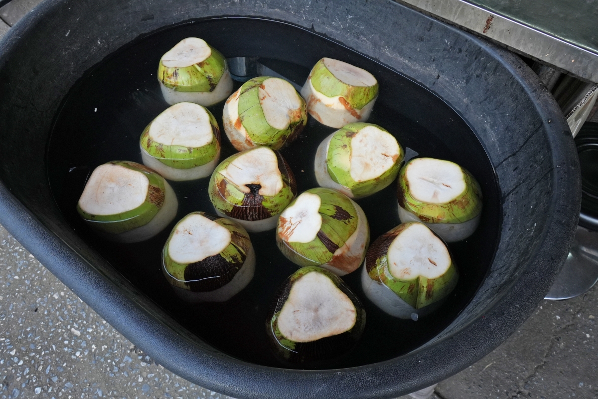 這裡的水果冰沙均一價都只賣你35泰銖而已~超級便宜!然後「現剖椰子水」我忘記價格了,應該是50泰銖左右吧?因為是從冰水裡頭拿出來的,所以喝起來沁涼消暑。