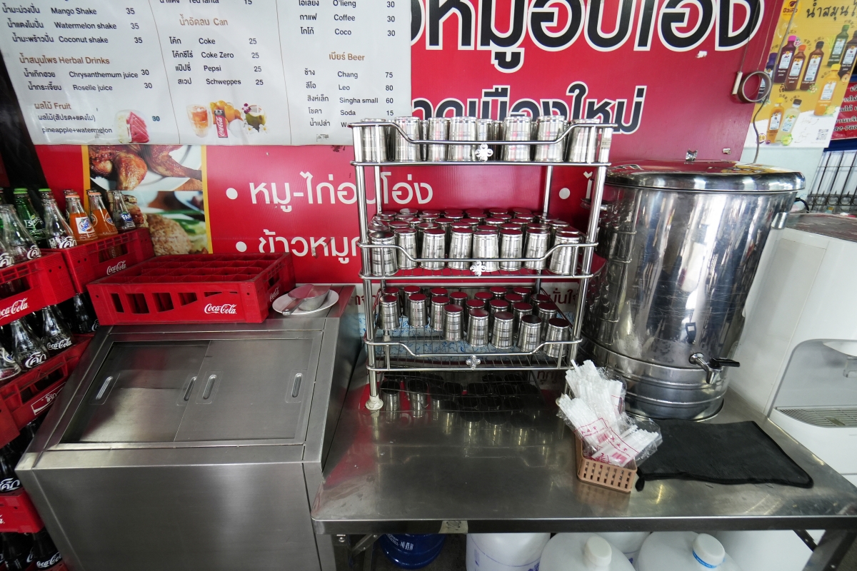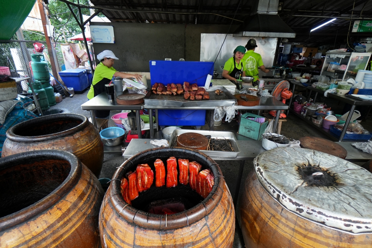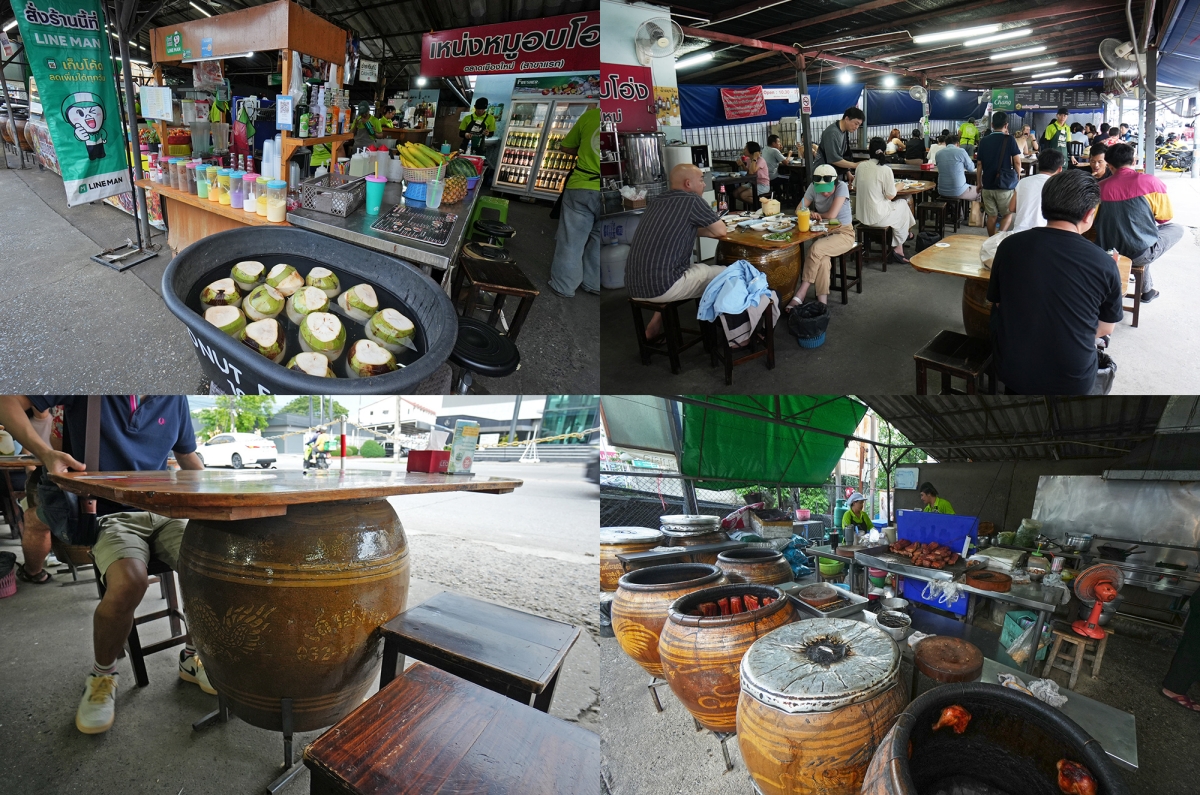 從開放式的廚房可以看到那些巨型陶甕一字排開的景象,雖然在泰國很多餐廳都點得到脆皮豬肉這道料理,但使用這種陶甕傳統烤法的相當罕見!