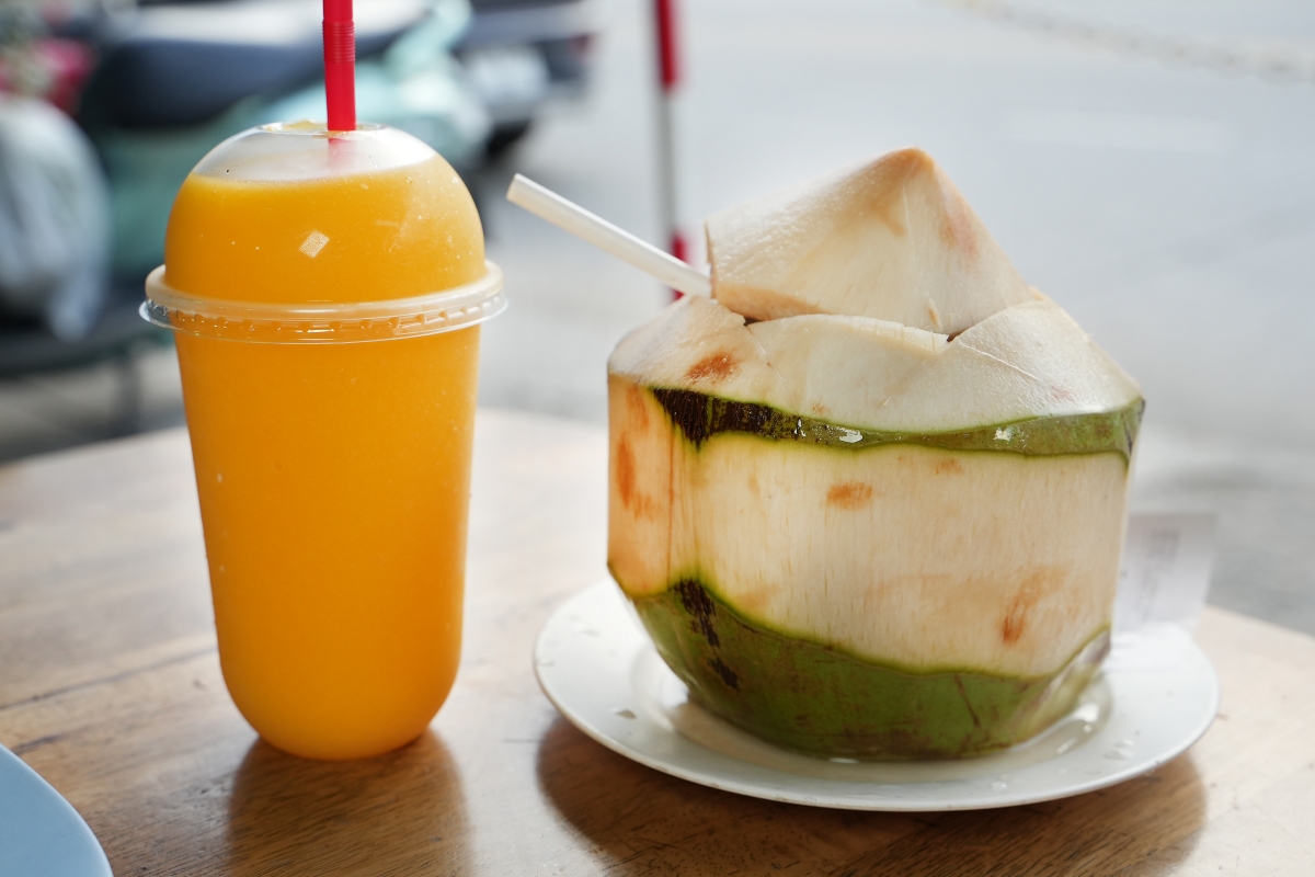 【芒果冰沙 35泰銖&現剖椰子水】
