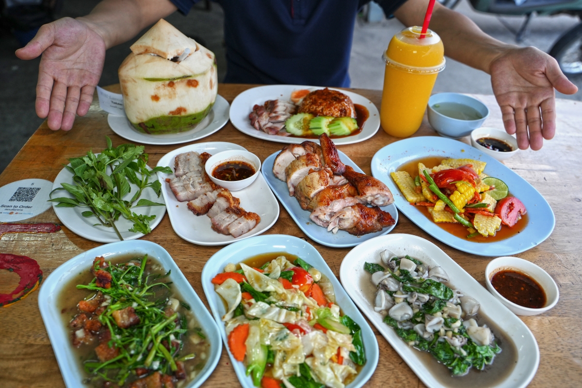 這是菜單的其中一面,背面還有一堆炒飯、蓋飯、泰式涼拌類的品項,菜色足足有八十幾道,而且價格約莫都落在70~130泰銖之間,真的不算貴。