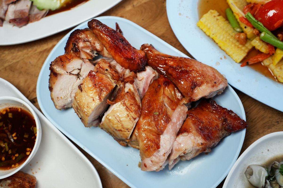其實這種泰國東北的烤雞算在地特色料理之一,蠻多餐廳都有在賣的,我自己覺得這一家的吃起來算水準之上,雖然不能說有多特別、多突出,但火候感覺掌握得恰到好處,吃起來有皮香肉嫩的感覺,而且不用沾醬就挺夠味的(有用醃料先去醃漬入味),也很推薦大家可以點來吃。