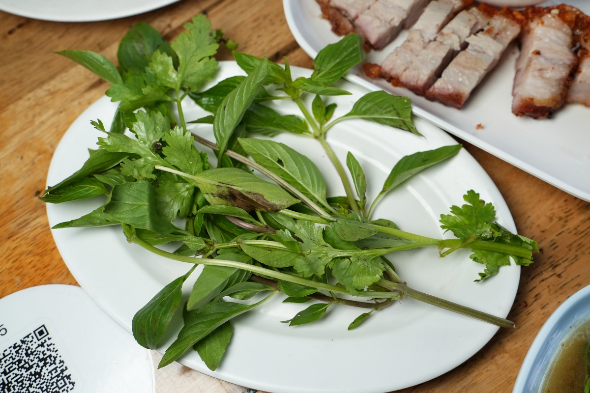 這裡的脆皮豬肉雖然裝在很普通的白色餐盤上,沒想像某些高級餐廳的那麼Fancy,但吃進嘴裡的滋味就真的是只能用「好吃」來形容,邊邊豬皮的部份咬下去可以聽到「卡茲」一聲,但又不會硬到讓你覺得牙齒開始動搖…然後肥瘦相間的豬肉不乾不柴,嫩度好又保有些許肉汁在裡頭,真心下次去清邁還會想再去回味。