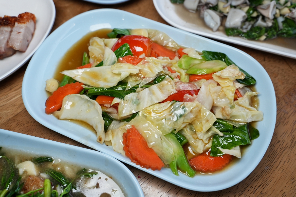 如果沒有很愛泰式涼拌類的餐點,這裡也有「綜合炒青菜」、「魚露炒高麗菜」之類的,都是屬於完全不辣的料理,小朋友也可以食用。