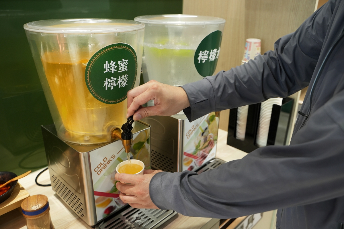 然後這裡的亮點之一就是自助吧有供應免費的冷飲,像我去的那天所供應的是蜂蜜檸檬和檸檬水,邊看菜單要點什麼的時候就可以邊喝個兩杯,以這種平價小吃店來說還挺罕見的。