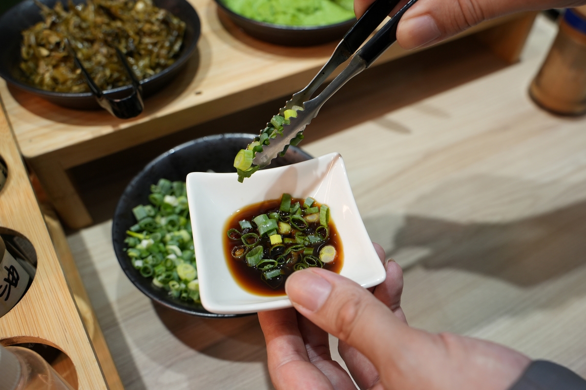 除了醬油、油膏、烏醋以外,酸菜、生辣椒製成的辣椒醬、芥末、蔥花等也都想吃多少就可以拿多少,但大家還是酌量取用啦~不要造成食物的浪費。