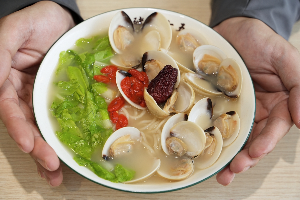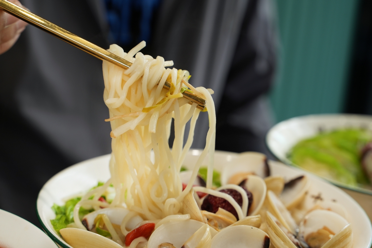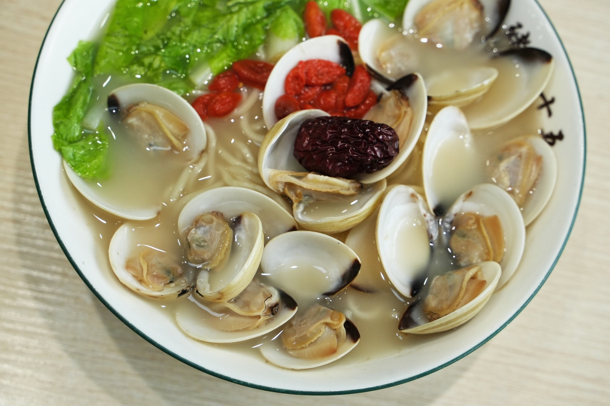 這碗的亮點絕對就是滿滿的蛤蠣了~稍微數了一下有超過十顆以上,肉質都很有彈性而且鮮甜,而且吐沙吐得很乾淨。