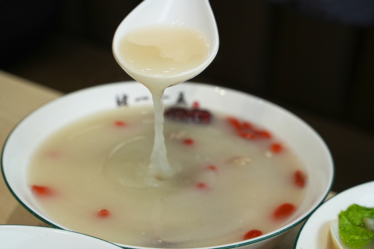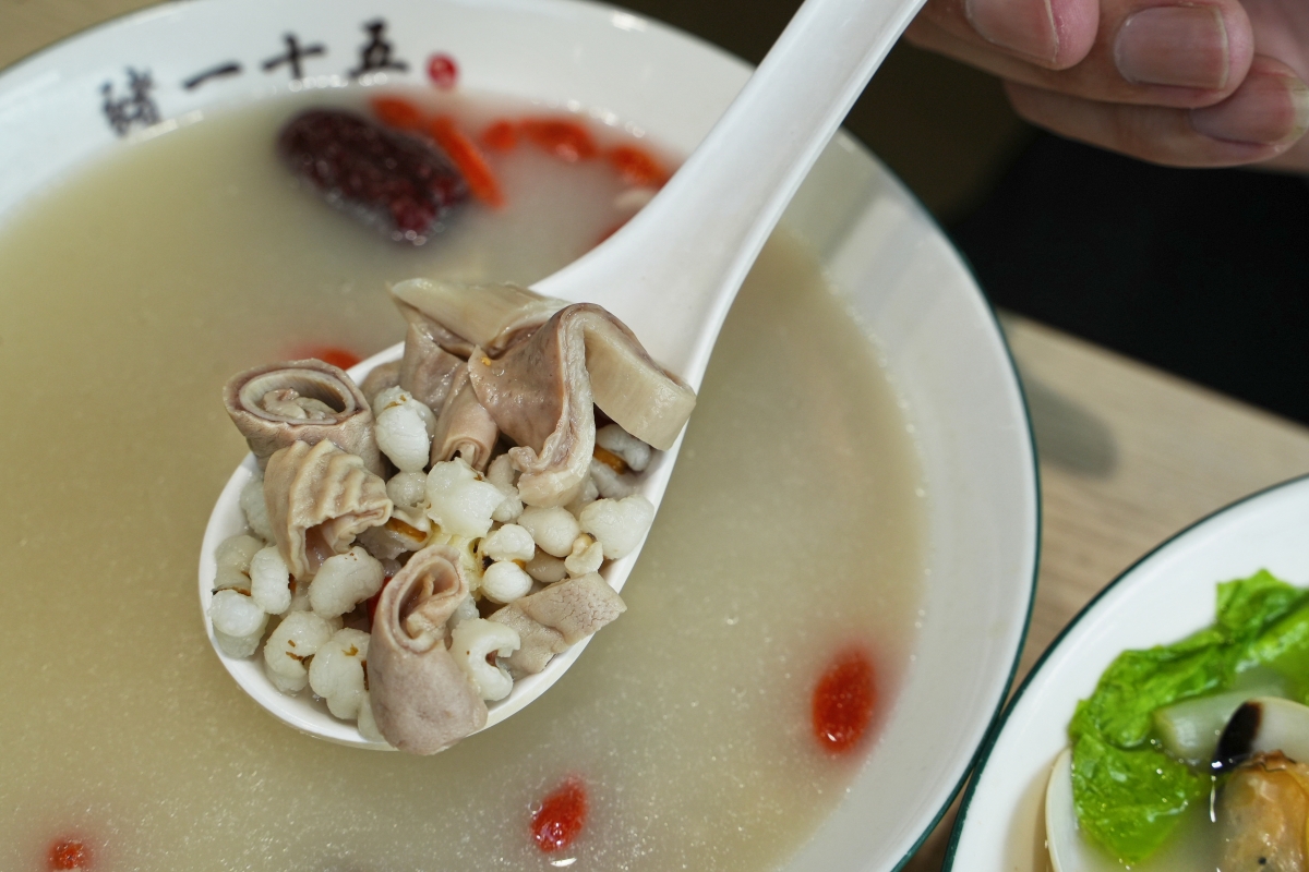 其實我一開始看菜單寫說四神湯一碗要80元的時候覺得好像沒有很平價…但是送上桌以後我覺得它真的超大碗,應該是一般小吃店兩倍的量(那天我們有另外拿小碗分著喝),然後隨便一撈就是滿滿的豬腸、薏仁、蓮子、紅棗、枸杞…等,可謂是相當真材實料!值得誇獎的是他們的豬腸真的處理得很乾淨,吃起來一點腥味也沒有,口感軟而不爛也拿捏得堪稱完美。