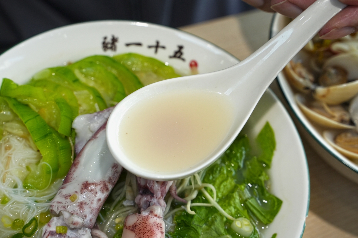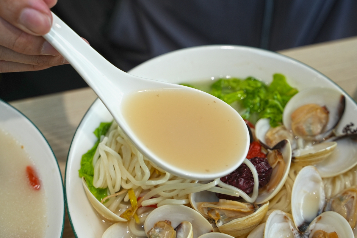 本來以為這碗的湯跟剛才的小卷米粉會有點接近,但試喝了以後還蠻差多的,因為它有加入一些中藥材去熬煮還加了一定比例的白胡椒,跟蛤蠣的鮮味融合以後有比想像中更濃郁一點,我朋友是覺得比小卷米粉那碗的更好喝~