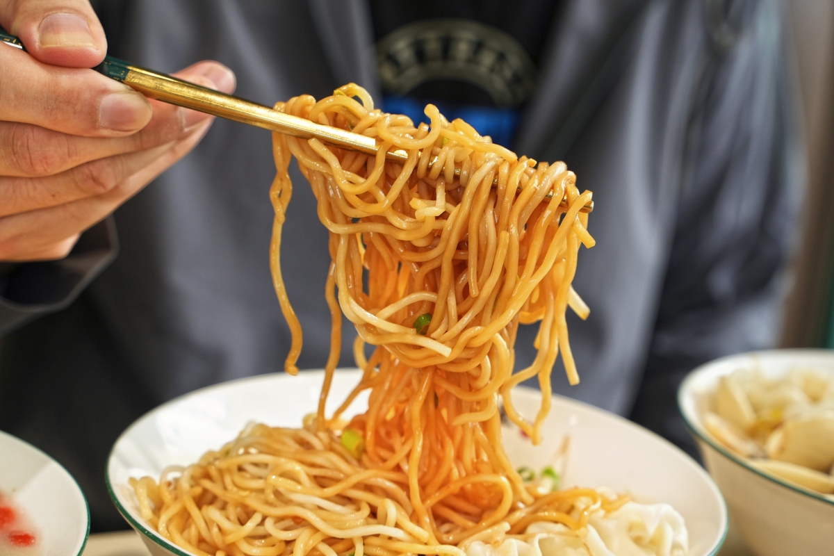 把醬汁均勻攪拌以後吃起來真的只有涮嘴可以形容,醬香結合花生碎和蔥花的香氣有種讓人忍不住「咻咻咻」吸個不停的魔力!(然後裡面還有脆口的豆芽菜)