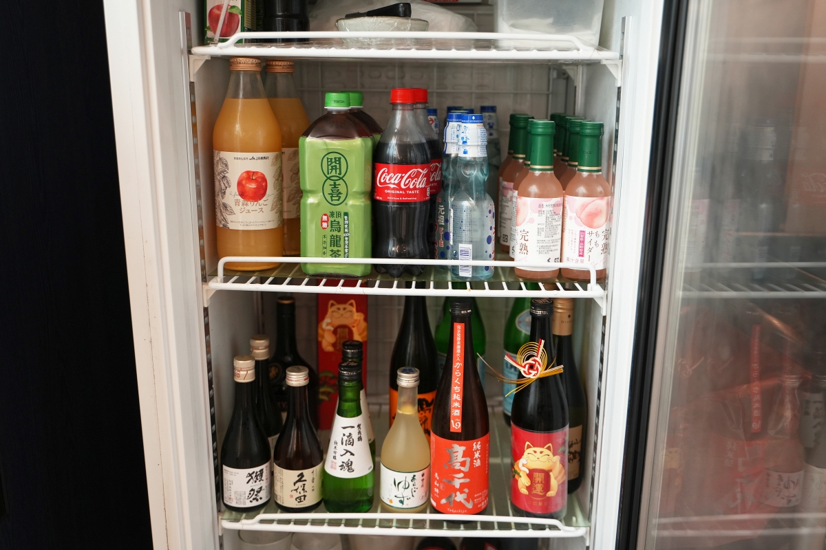 冰箱裡面可以看到有販售的酒水,都能夠另外加購,如果想自己帶酒的話,一瓶酌收開瓶費450元。