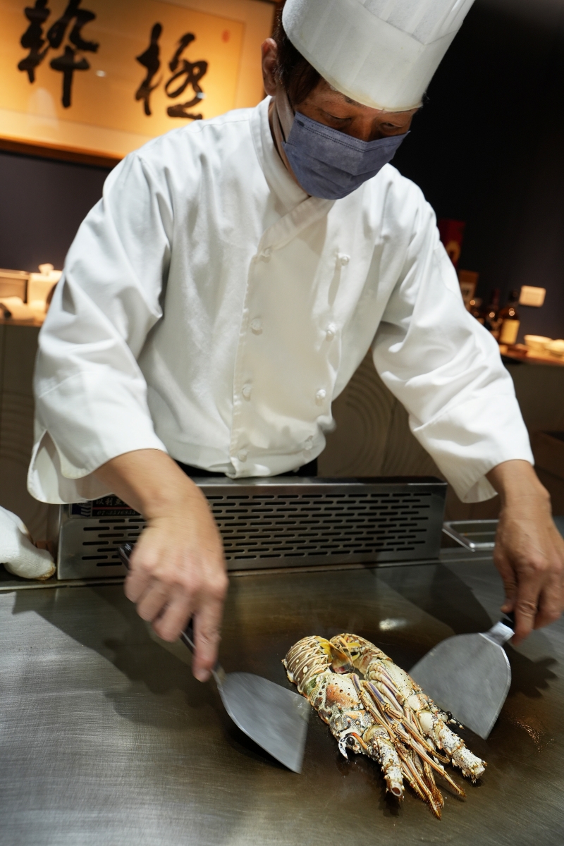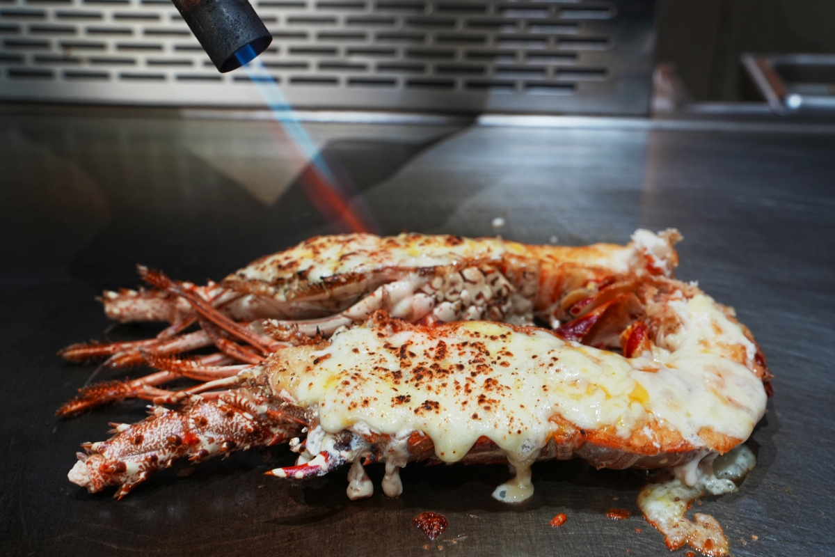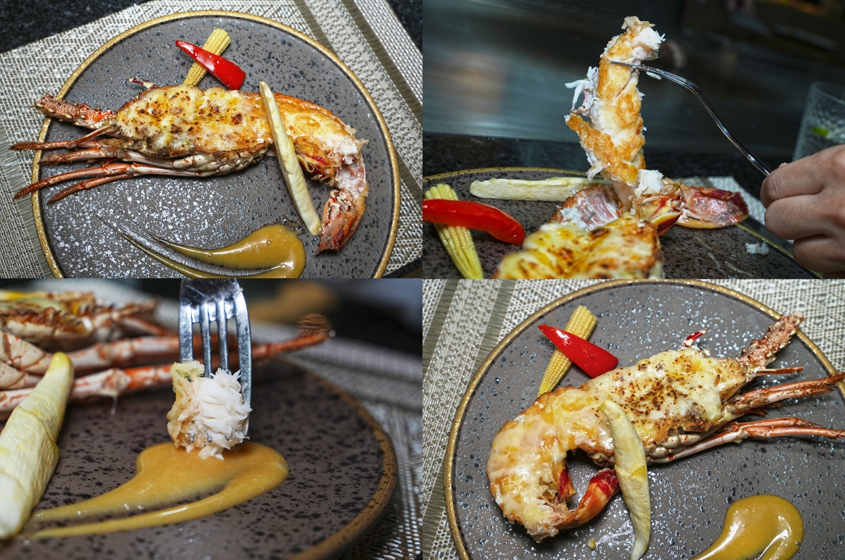 再來師傅在鐵板煎檯上為我們烹調的是肉量豐富而且肉質厚實的「巴西龍蝦」。