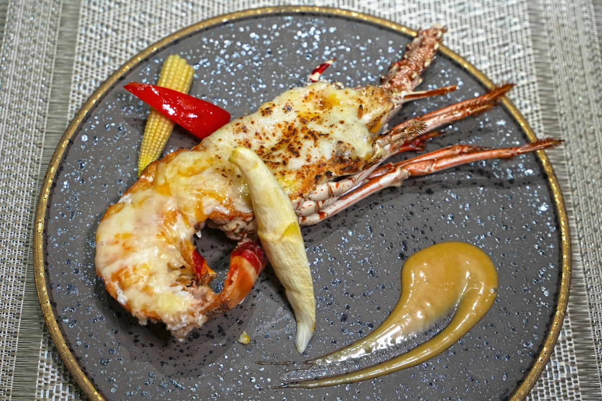 這龍蝦肉只要用刀叉挖一下就可以整塊都挖出來,肉量飽滿又紮實、有彈性,同時吃得出海味與甜味,搭配焗烤的起司的香氣跟微微的牽絲感讓整體口感與味覺上更有層次,當然~你們也可以搭配盤子上的蜂蜜芥末一起享用,那又是另一番不同的滋味了。