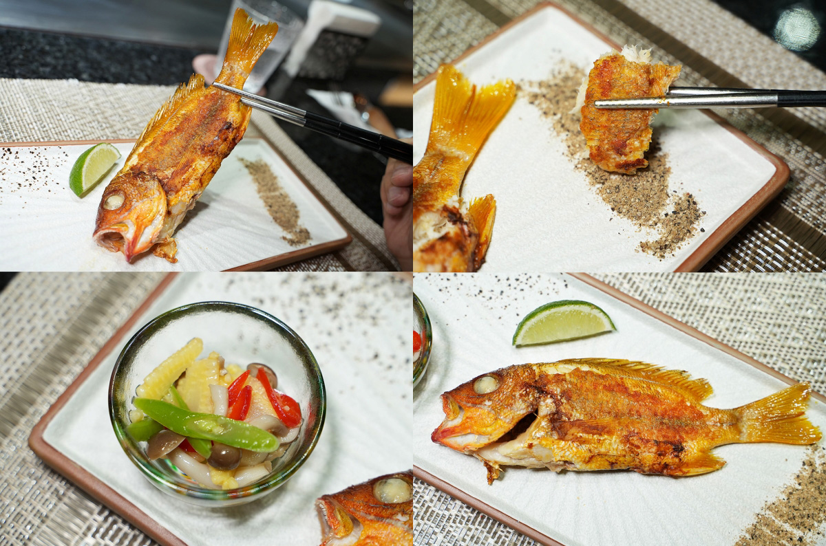 那天還蠻開心一人都可以吃到一隻完整的赤筆仔的!它雖然魚骨頭有一點多…但沒有那種讓人難以察覺的細刺,而且肉質非常細嫩又甜美,香煎起來皮脆肉嫩的超級美味~♥