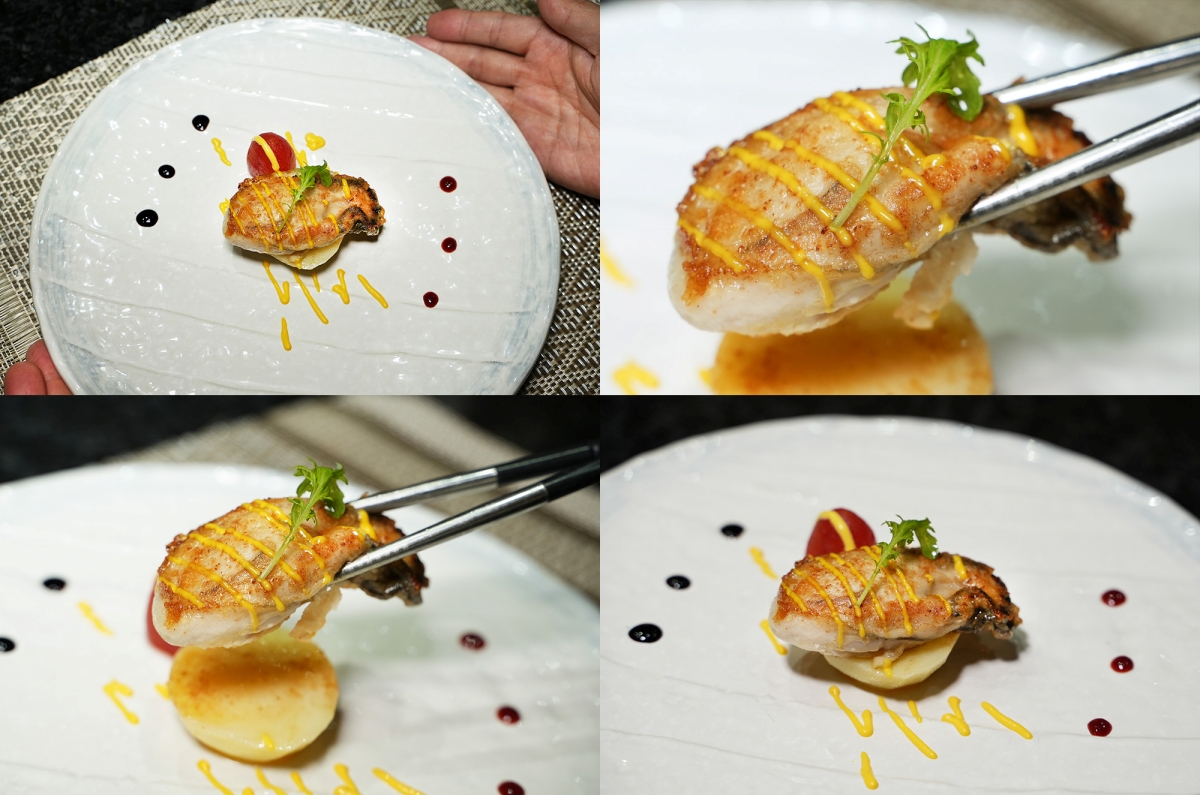 擺盤以後整個視覺上看起來超級誘人,阿峰還催我要拍快一點,因為他已經忍不住要大快朵頤一番了~(上面炙燒的程度可以做客製化的調整,想要完整炙燒或只炙燒一半享受兩種不同的口感都可以喔!)