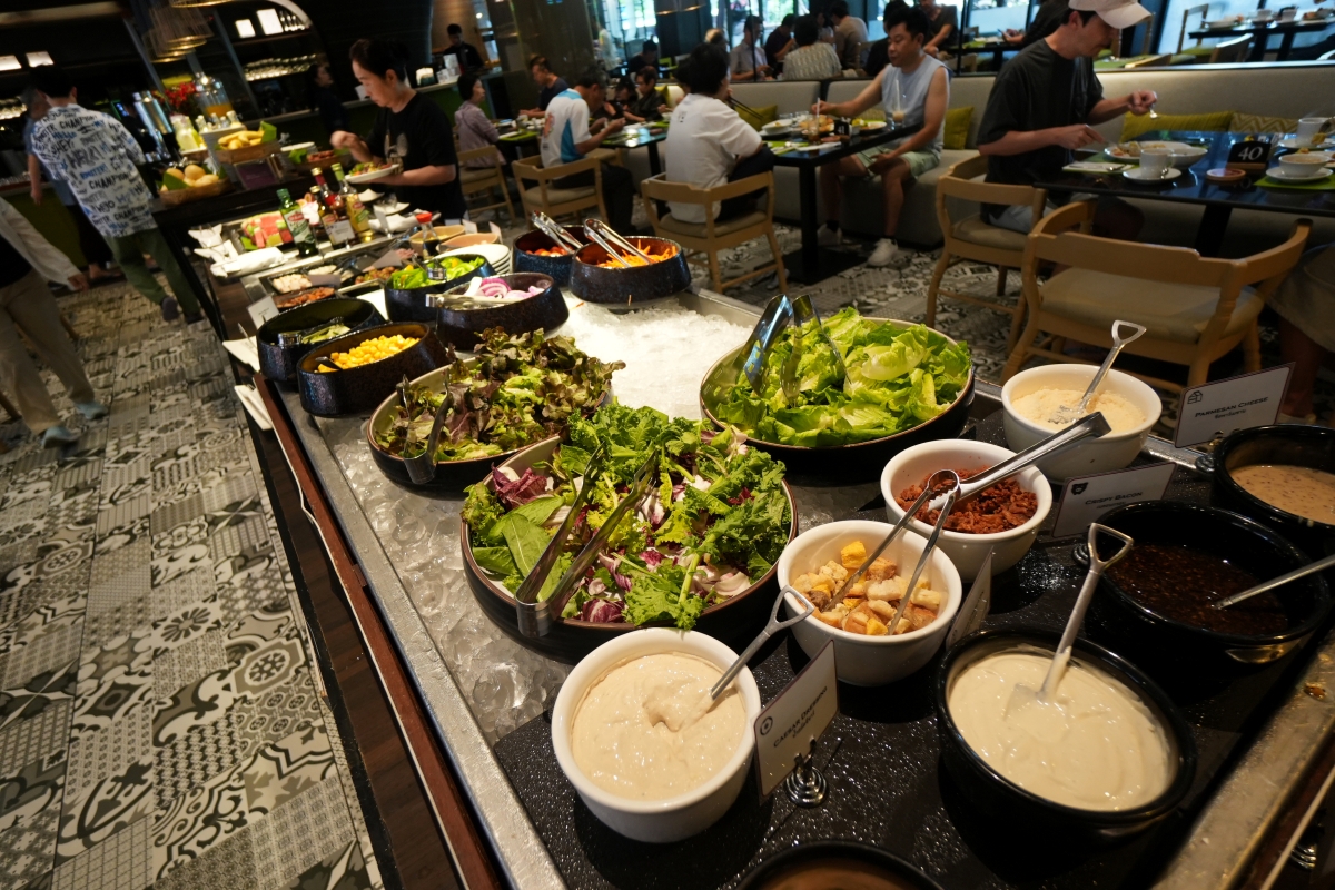 這裡的服務人員一直有在注意自助吧的取用狀況,基本上那些菜餚、食材接近半滿狀態時就會補充,所以不用擔心太晚下樓就好吃的都被拿光光那樣。