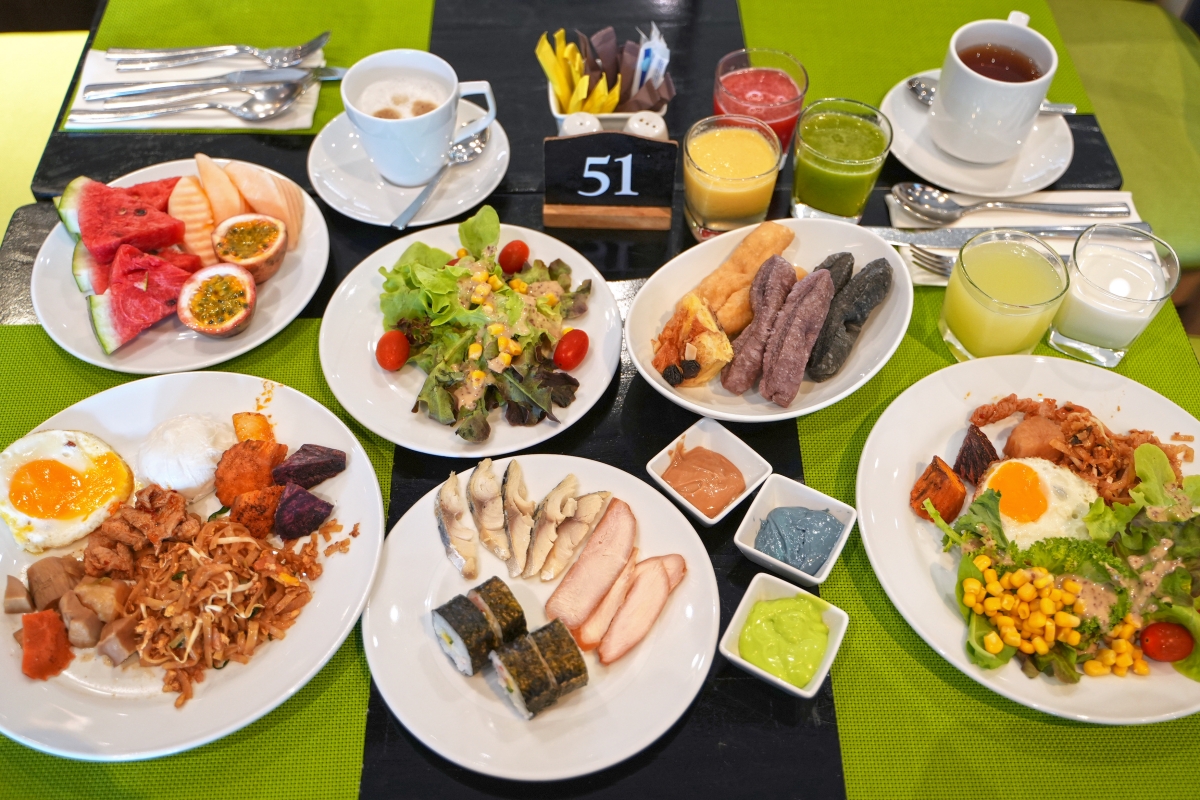 這裡無論熟食還是一些沙拉、冷盤、水果類的應有盡有,而且為了符合各國住客的喜好,除了泰式跟西式的以外也有一些比較偏中式和日式的料理,這個在一般平價飯店是比較少見的。