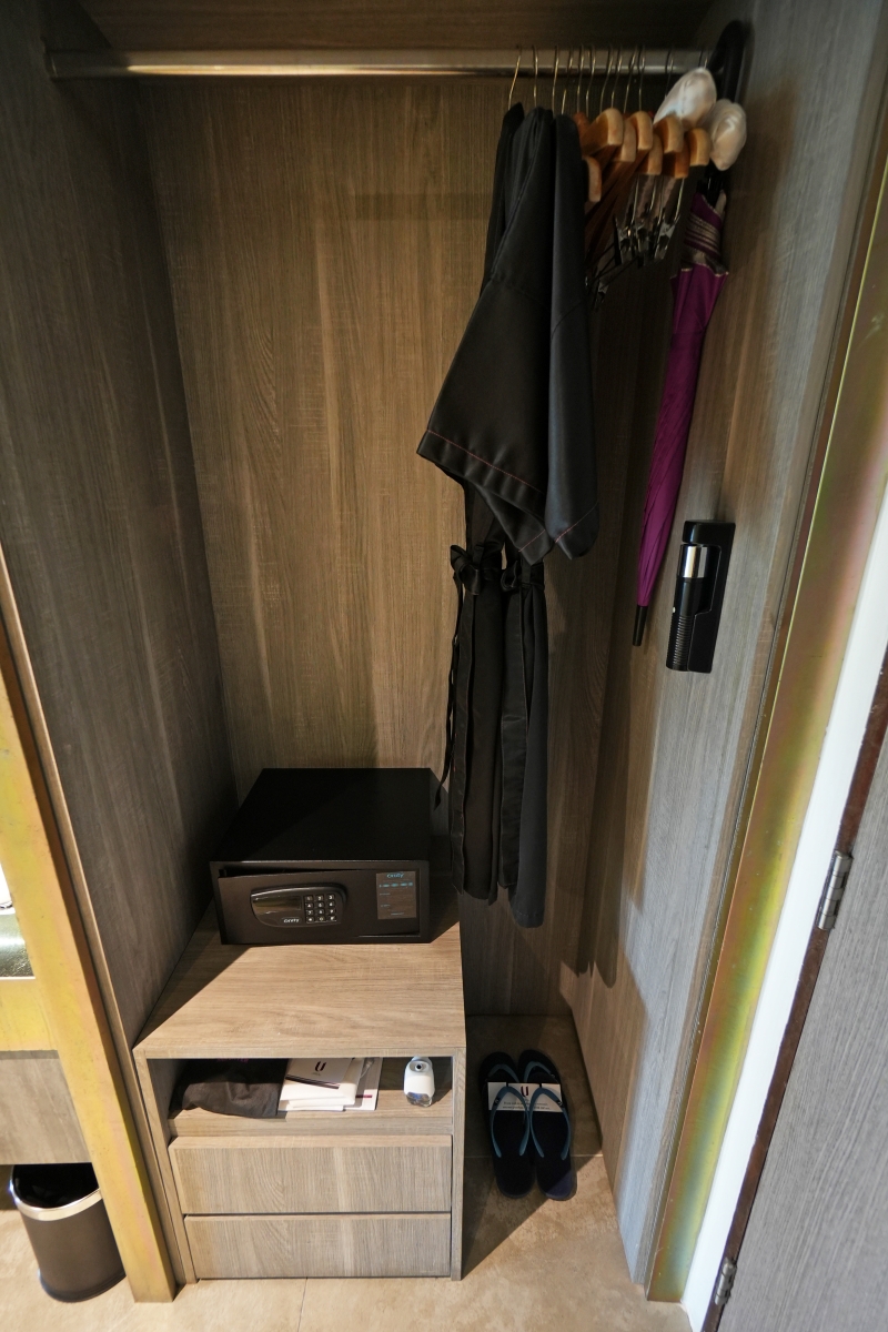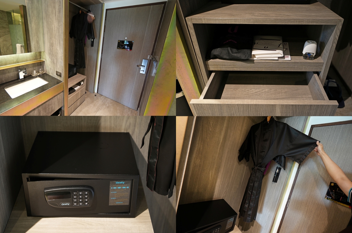 房門的旁邊是開放式的掛衣空間,提供的衣架數量還蠻多的,若真的不夠也可以再跟飯店人員索取。