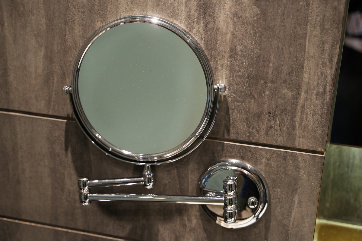 洗手台旁邊的雙面鏡有放大效果,化妝或夾粉刺時很好用~♪