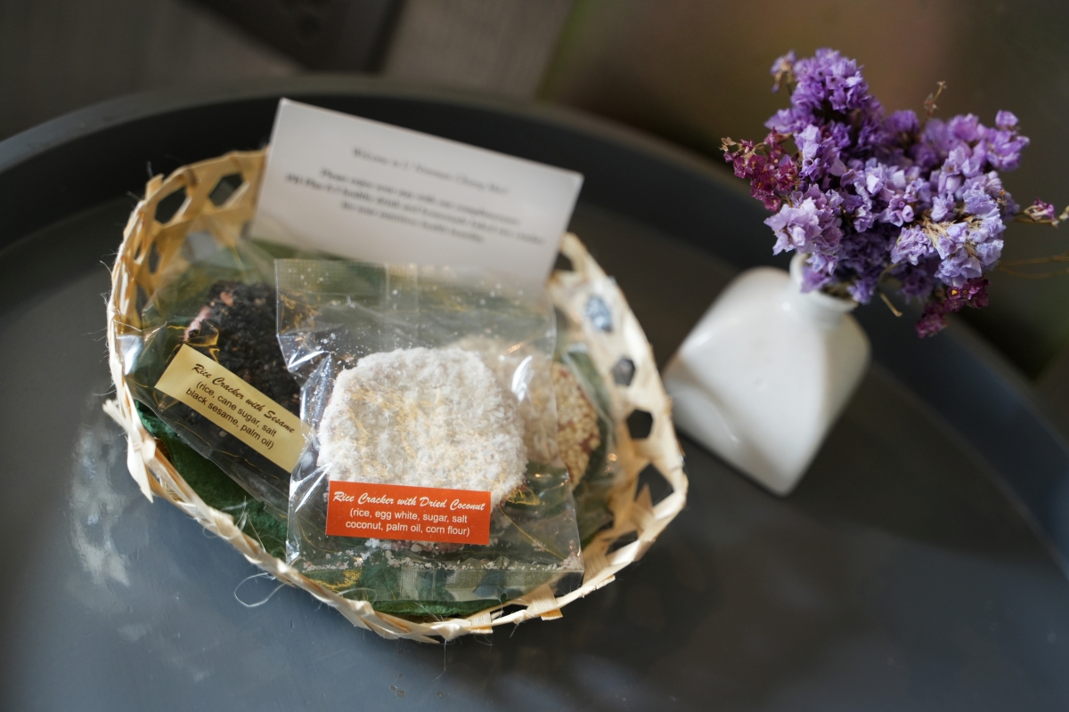 這個是迎賓小點的米餅,有椰子和芝麻等口味的,酥脆可口,配咖啡或泰奶都很不賴。