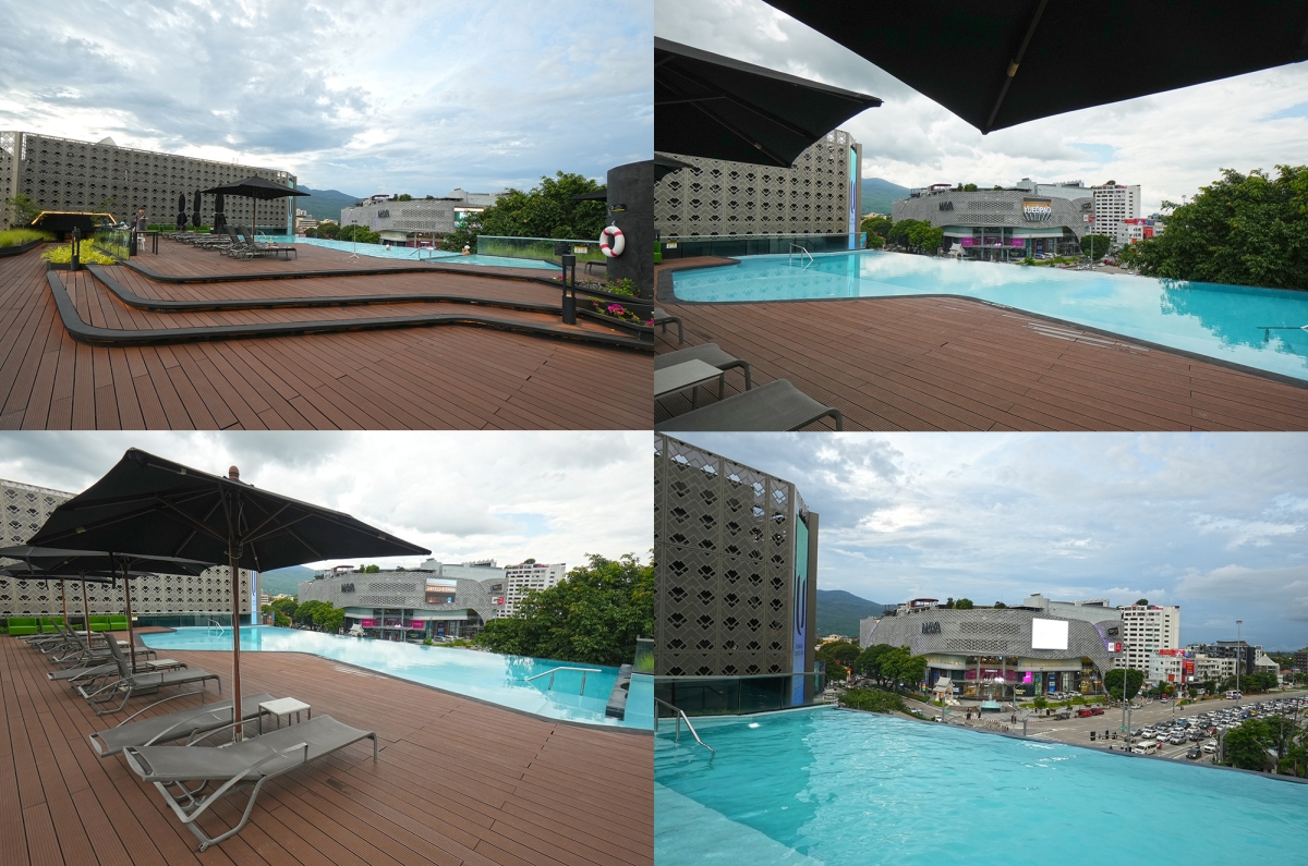 飯店的泳池位於頂樓,雖然規模不算很大…但是屬於大家都很愛的無邊際泳池,只要角度抓得好的話,可以拍出很多讓人驚豔的美照,還可以以「AYA Lifestyle Shopping Center」為背景!(但我入住的那兩天的天氣都不是太好,所以拍起來整個天空都陰陰的)