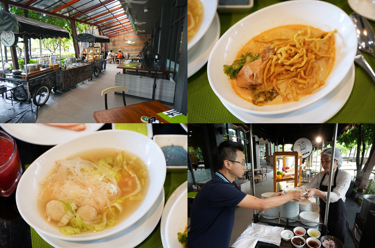除了室內的取餐區以外,室外還有像是餐車的地方,可以點一些現點現做的蛋料理,還有提供美味的米粉湯和來泰北旅遊一定要嚐嚐的「Khao Soi(泰北金麵)」,但如果你們真的一點點辣都不能吃的話還是喝米粉湯就好了啦!