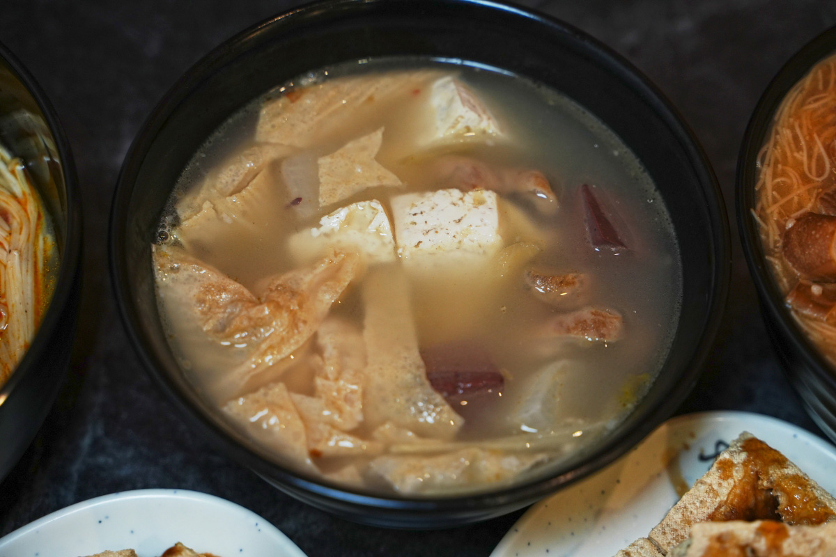 對於完全不吃辣的朋友,我推薦你們可以點這碗「清燉臭臭湯」,基本上它跟麻辣鴨血臭豆腐就是差在湯頭的差異而已。